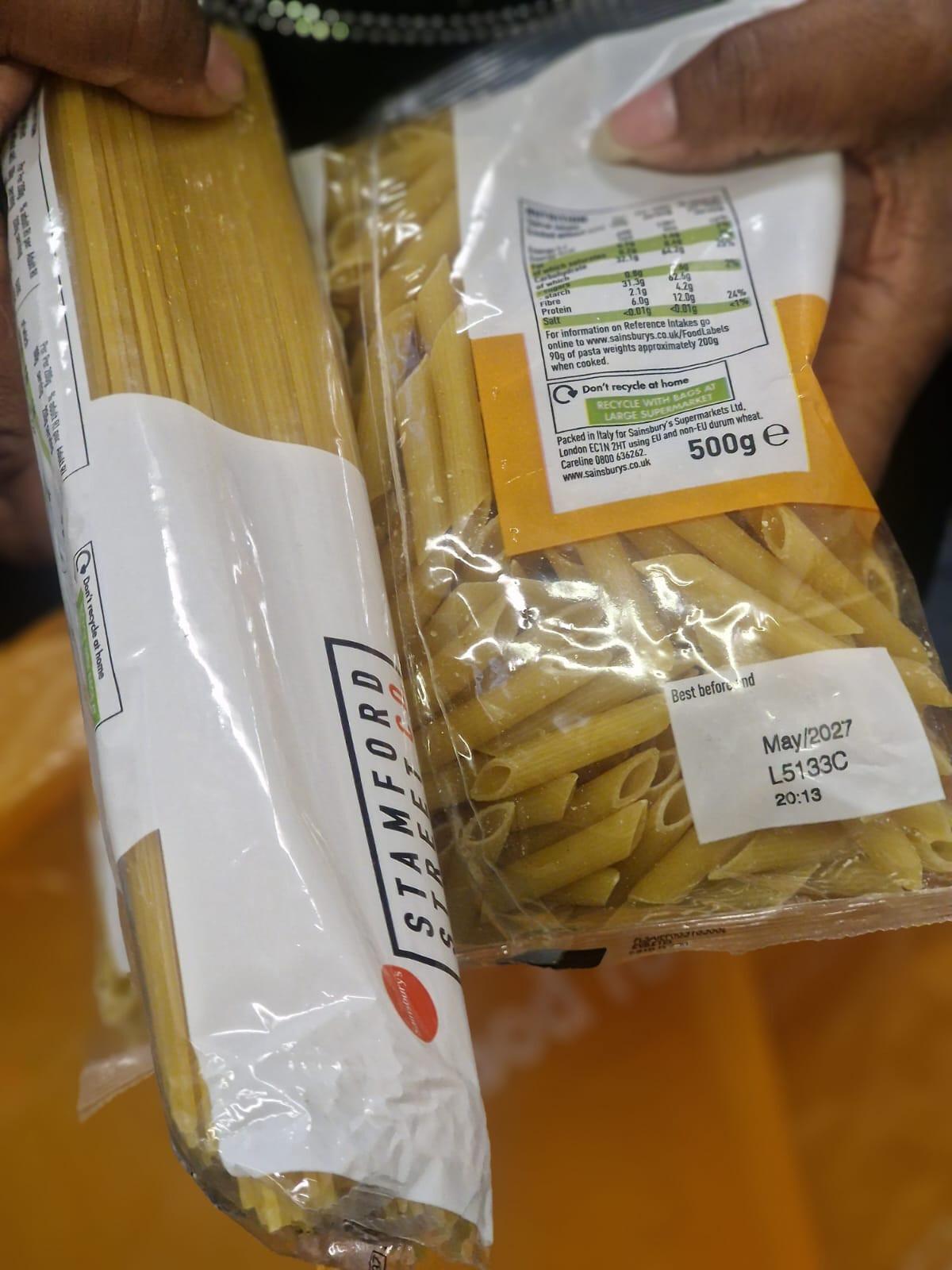 Sittingbourne volunteers packing up the pasta for cupboard staples.